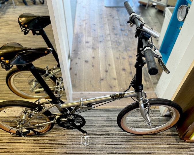 数ヶ月前、お子さんにプレゼントされたという「Fuji STAUT」を当店にお持ち込み頂きスタイリングして頂きましたN様が、「自転車って楽しいですね。ハマってしまいました。笑」と、当店で取り扱っている折り畳み自転車にも興味を持っていただき、この度「DAHON Boardwalk W8( DAHON 40th anniversary )」をご購入頂きました。