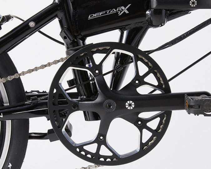 現行のDeftarよりご要望の多かったVブレーキ化や可変式ステム、フレームの強度を高めるDeltechの採用、リアホイールをDAHON Proへアップグレードなどなど劇的な進化を遂げ生まれ変わった「Deftar TX」。