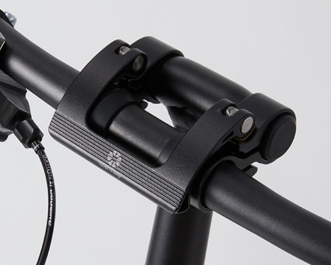 ハンドルバーには角度調整が可能なクイックリリースステム (QR W-CLAMP STEM 45) を採用。