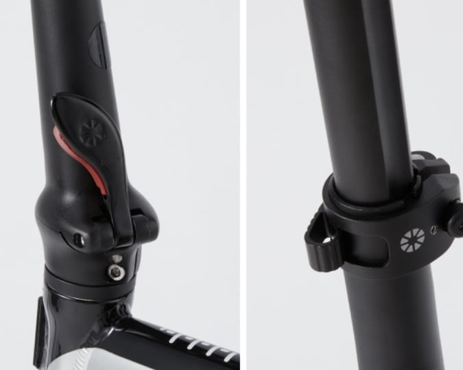 ハンドルポストヒンジ部は安全フック一体型を新たに採用。アジャスタブル式で高さの変更が可能。