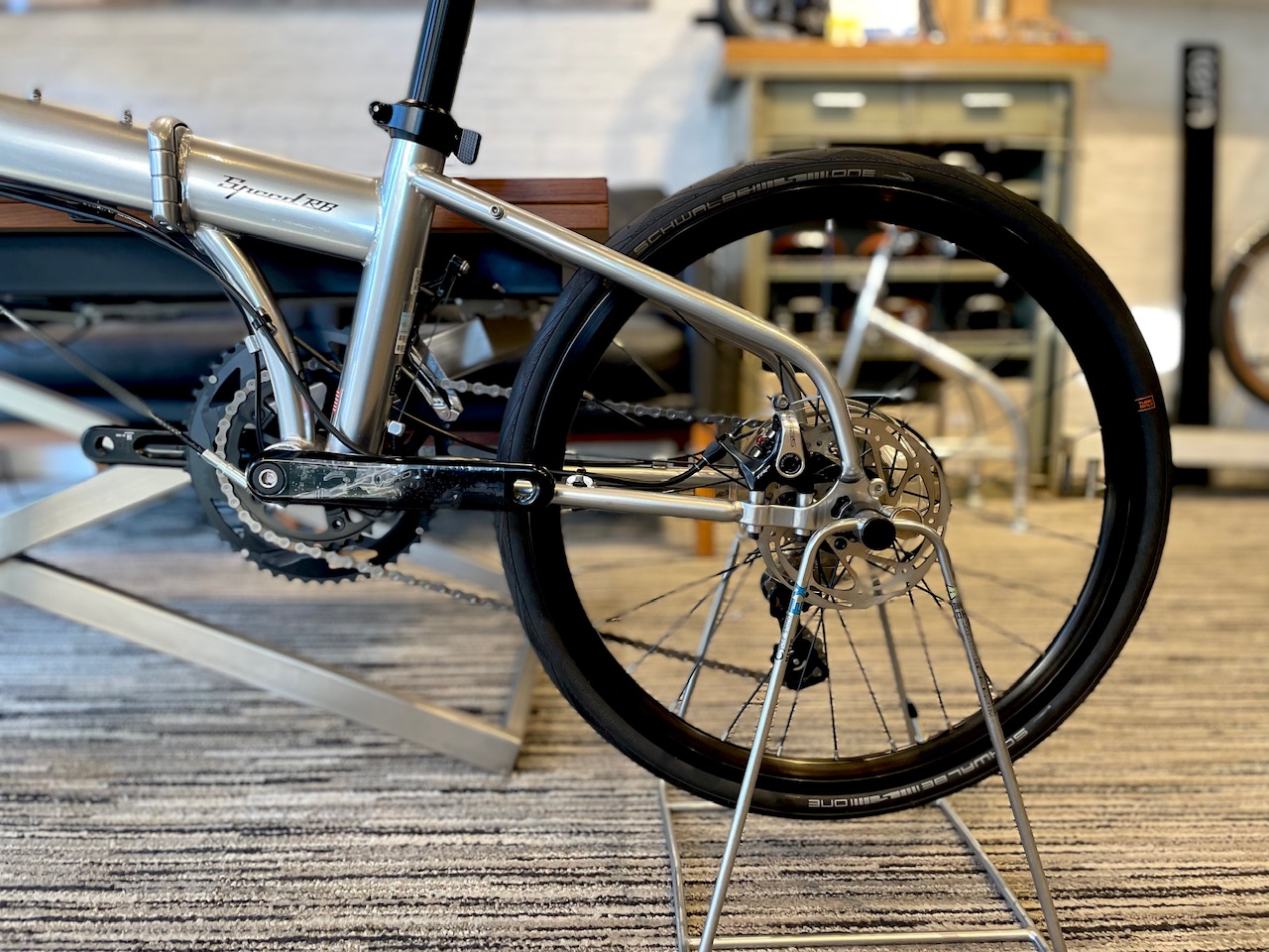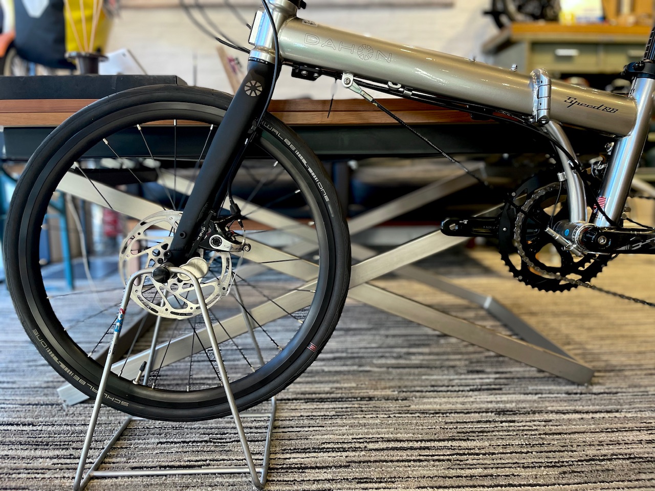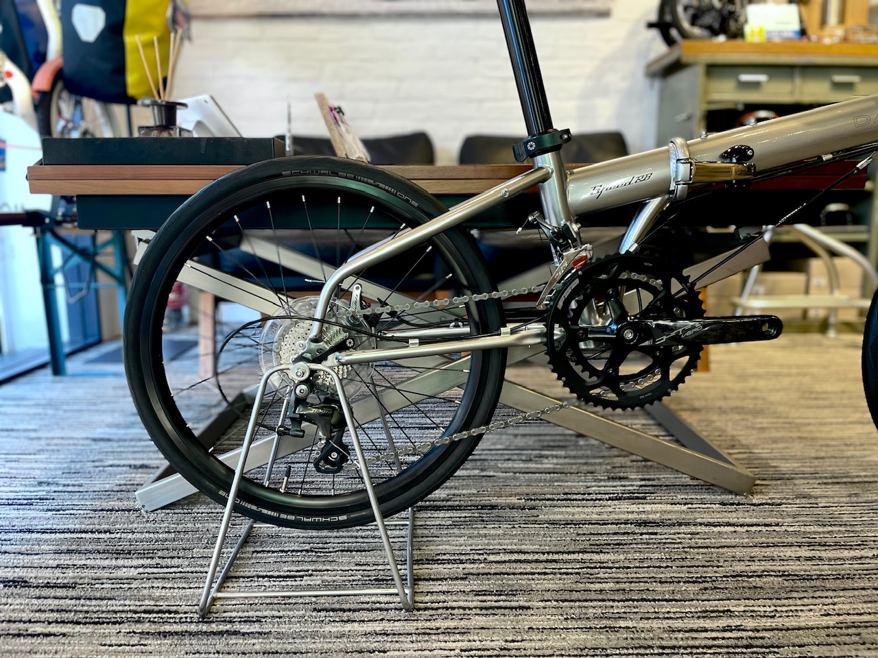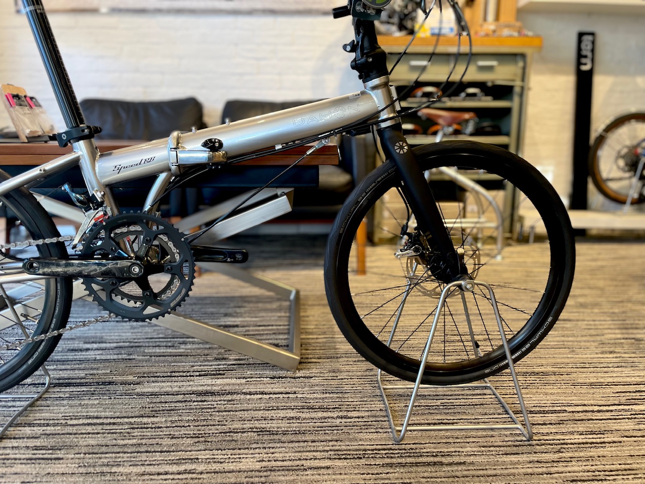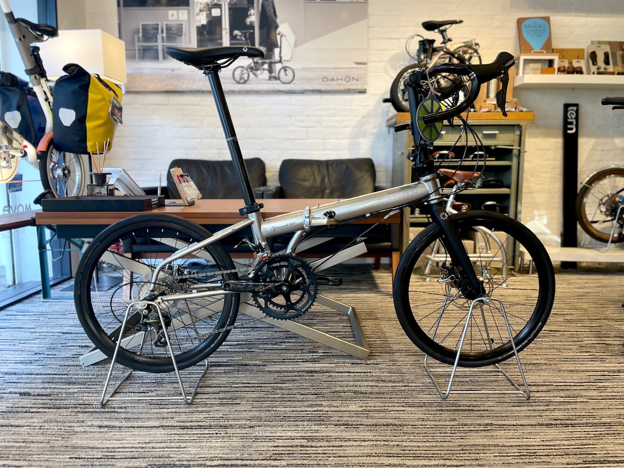 クロモリ(鉄)フレームで折り畳み、ドロップハンドルでディスクブレーキ、そんな夢のような自転車って探してもなかなか見つからない・・・。灯台下暗し。目の前にありました。『DAHON Speed RB』。マニアックな一台です。すでに生産終了(廃盤)ですが、当店にひっそりと一台のみ在庫ございます。