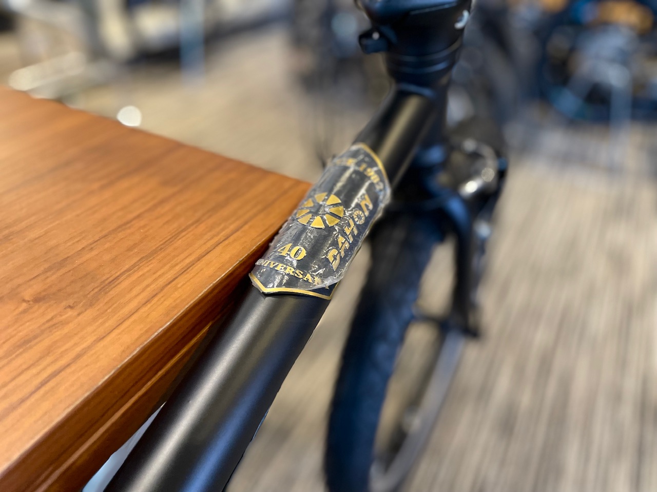 Boardwalkをベースに『DAHONブランド誕生40周年記念モデル』。すでに生産終了しており入手困難品。フレームのバッジには「40th Anniversary」の刻印が輝いております。探されていた方マットブラックのみ一台ございます。